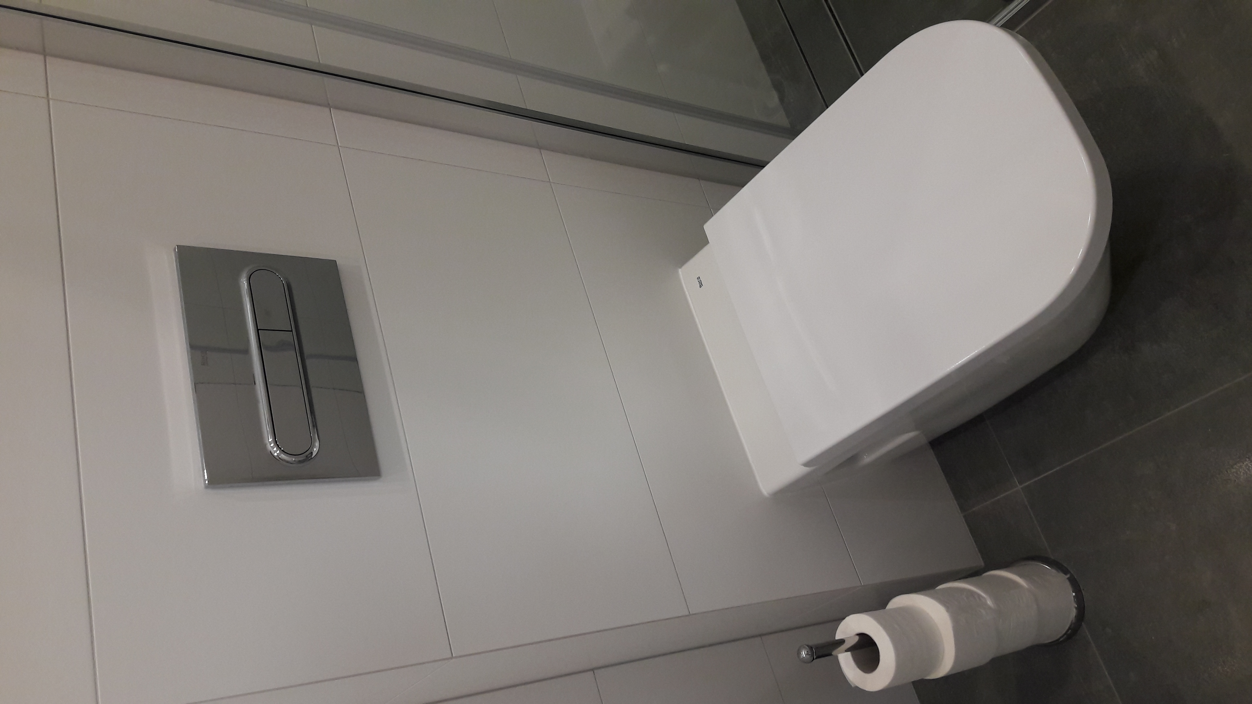 Łazienka z kabiną prysznicową, WC i pralką.
