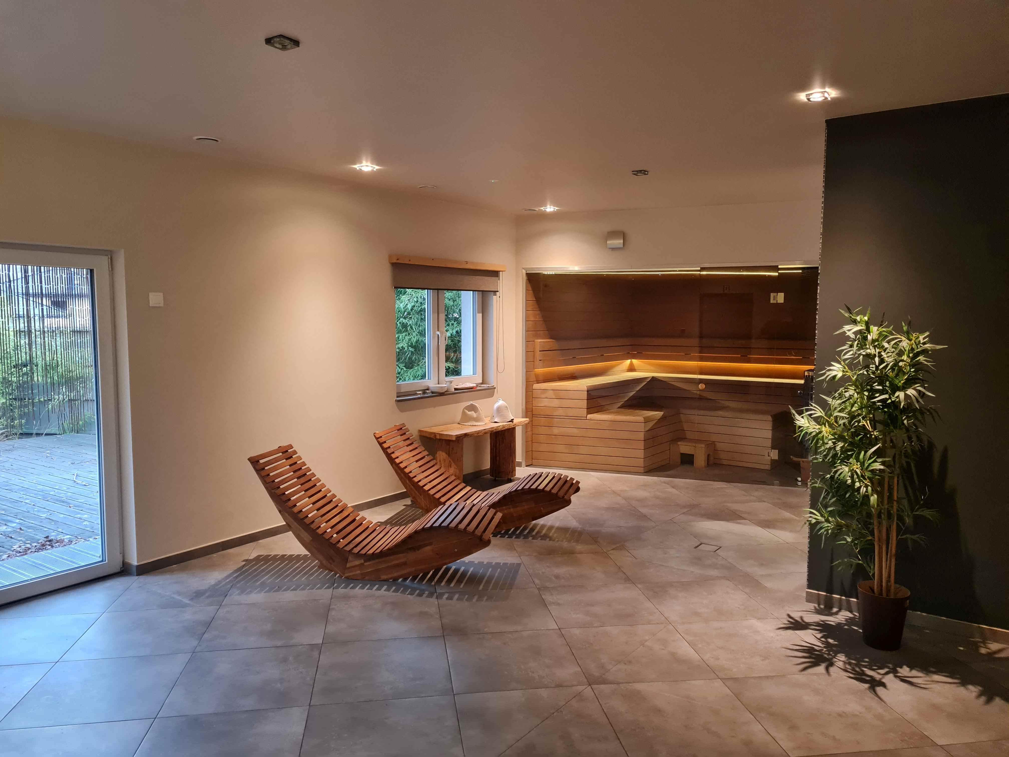 -- Saunarium z sauną fińską, łażnią parową, dwoma prysznicami i strefą relaksu