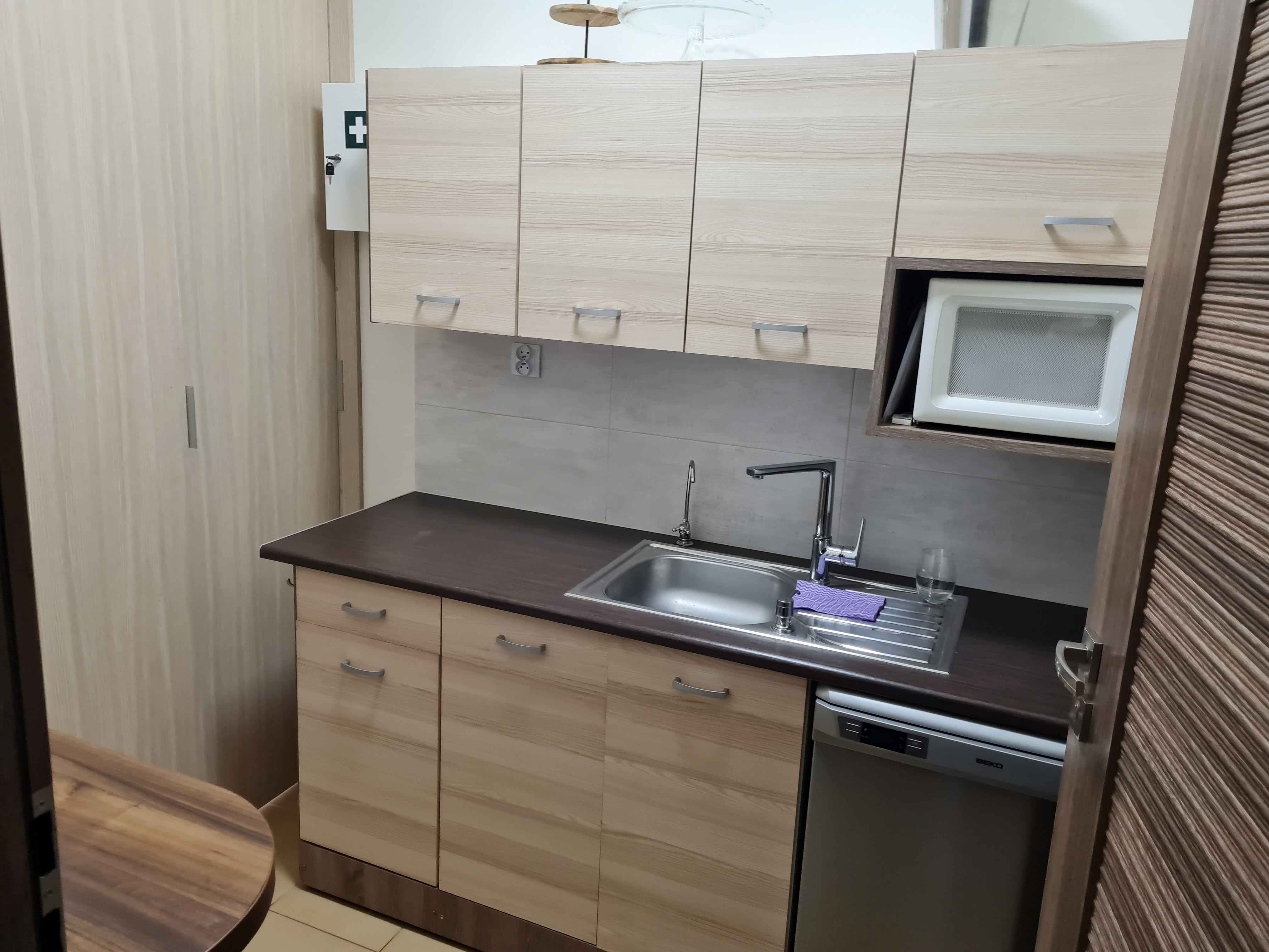 Na zewnątrz ośrodka znajdują się dwa ogrody z tarasami i zagospodarowaną zielenią wraz żaglami, ośrodek posiada przestrzenny parking na 10 aut.